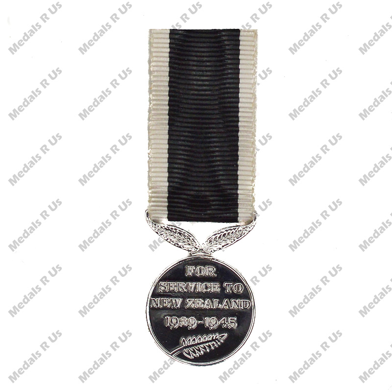 The reverse of the medal is inscribed “FOR SERVICE TO NEW ZEALAND 1939-1945” and has a silver fern at the bottom edge of the medal.