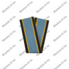 The ribbon is 16mm wide and has light blue centre (8mm), with thin stripes of yellow (1mm) on either side with borders of black (3mm). These coloures and the layout represents the continous service of the Air Force during both night and day.
