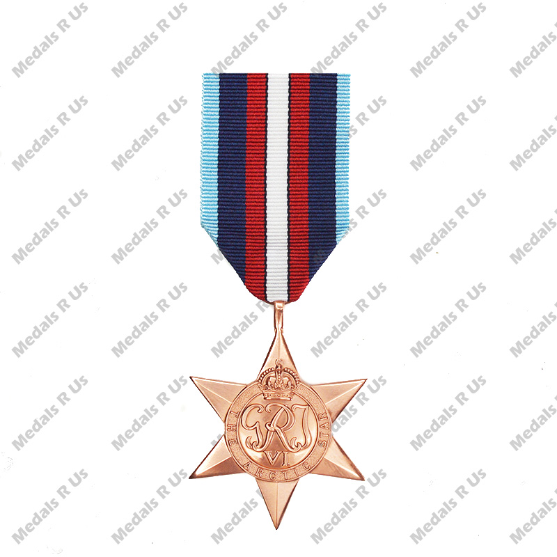This six-pointed star has a circular centre with the GRI/VI monogram, surmounted by the Royal crown, and inscribed ‘The Arctic Star’.