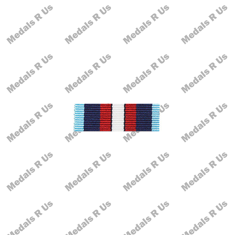 The ribbon is 32mm wide. It has one white stripe in the middle (4.5mm) with a .25mm black pinstrip band, red stripe (4mm) , dark blue stripe (6mm) and light blue stripe (3.5mm) on either side of the central white stripe. The three colours represent the forces which were involved in the campaign, light blue for the Air Forces, dark blue for the Navy, red for the Merchant Navy, and the central white band, edged in black, represents the Arctic.