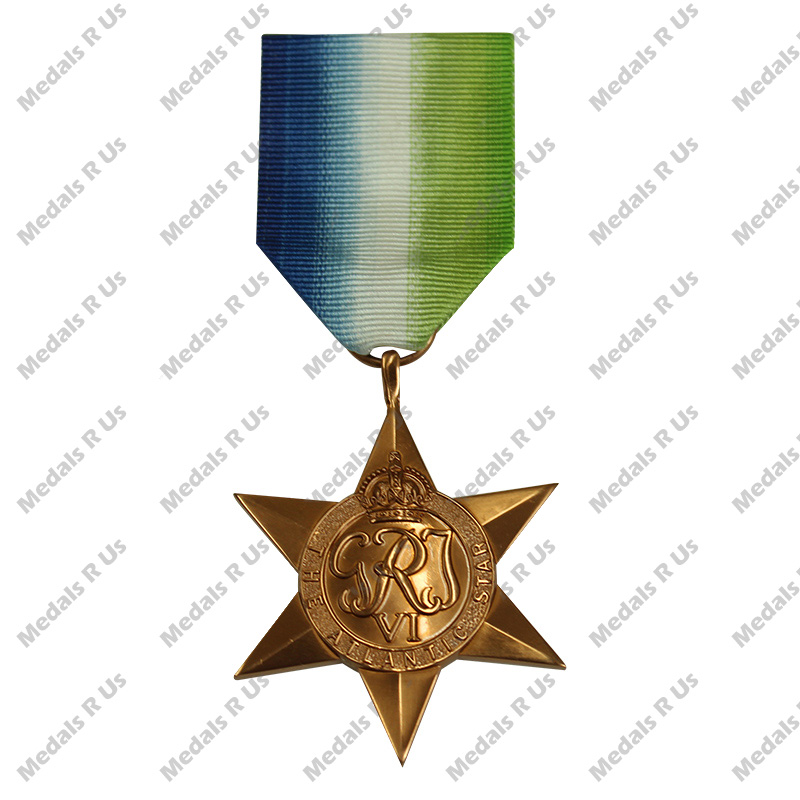 This six-pointed star has a circular centre with the GRI/VI monogram, surmounted by the Royal crown, and inscribed ‘The Atlantic Star’.