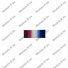 The ribbon is 32mm wide, and consists of an orange watered centre (16mm), with thin stripes of white (3mm) and black (1.5mm) at each side, and borders of royal blue (3mm).