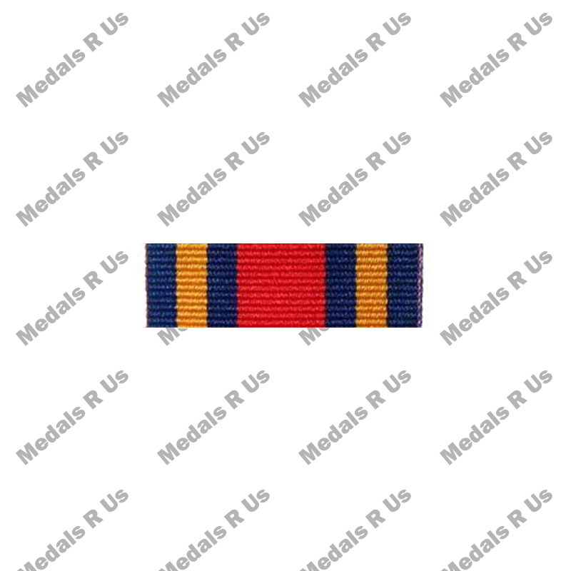 The ribbon is 32mm wide, The centre of the ribbon has a red stripe (10mm) representing the Commonwealth forces with outer stripes of dark blue (3.5mm) representing the British forces. The dark blue bands each have at their centres a stripe of bright orange (4mm) symbolising the sun.