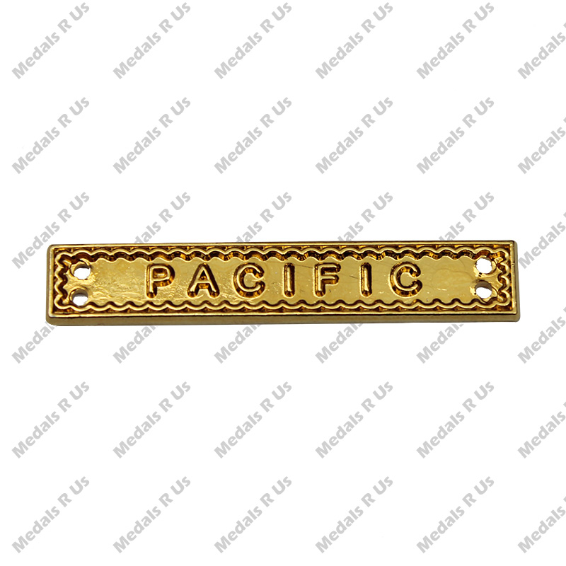 This clasp has a frame with an inside edge which resembles the perforated edge of a postage stamp, and is inscribed “PACIFIC”. This clasp is worn on the Burma Star.
