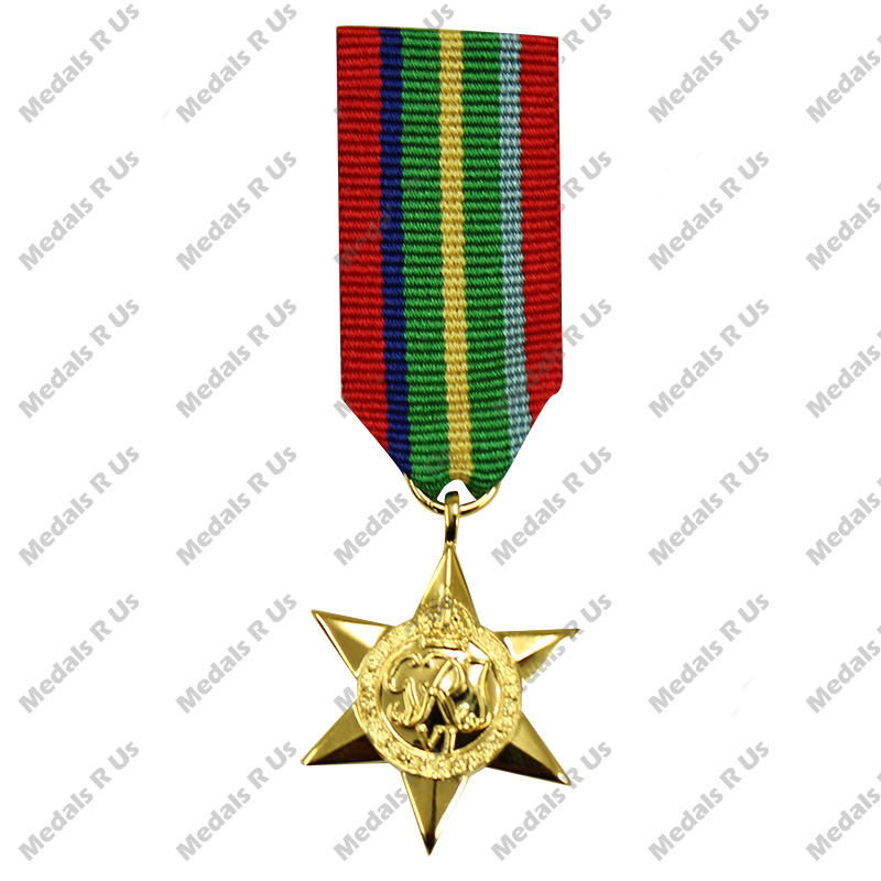 This six-pointed star has a circular centre with the GRI/VI monogram, surmounted by the Royal crown, and inscribed ‘The Pacific Star Star’.